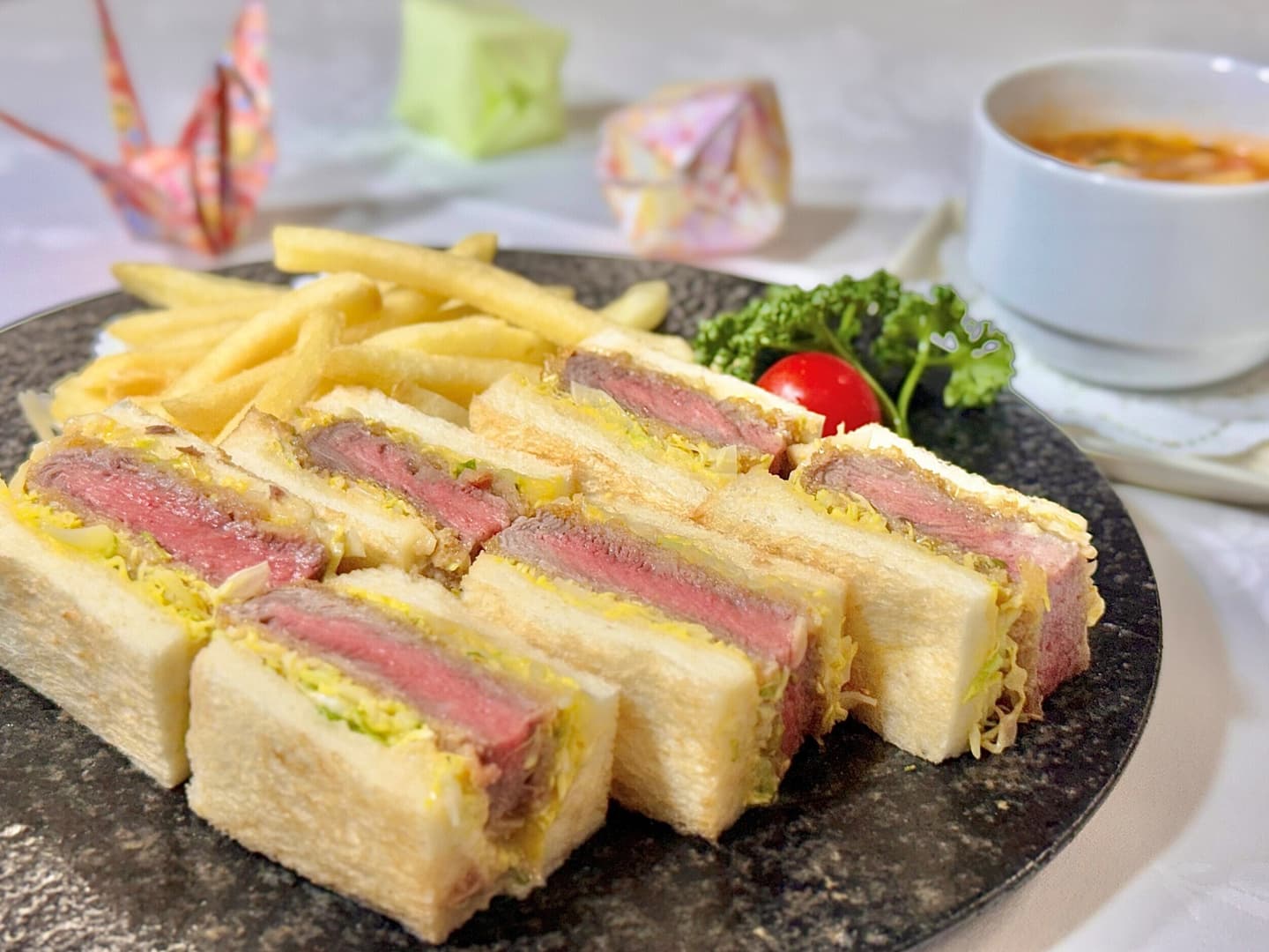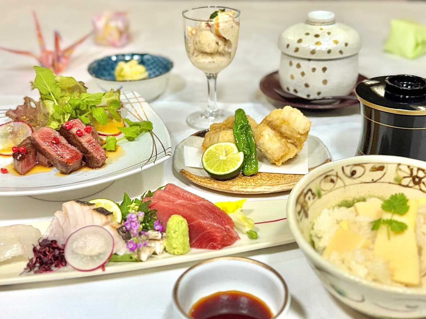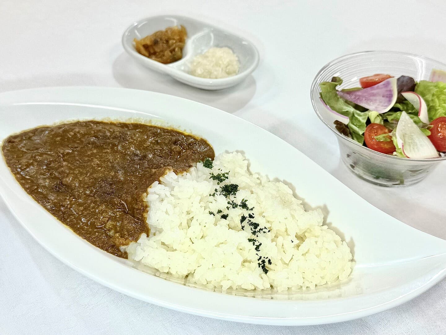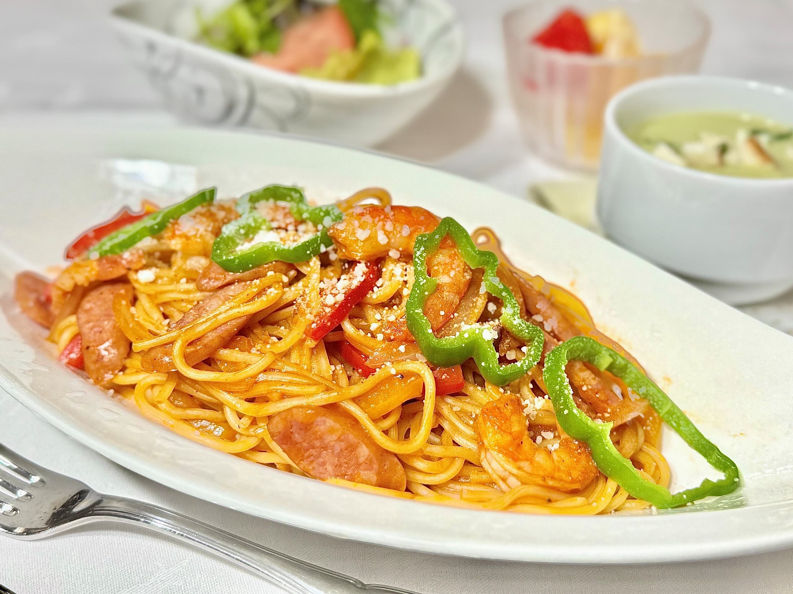 Lunch Menu ランチメニュー ランチメニュー パーティメニュー テイクアウトメニュー ジャパン旬菜御膳 ¥5,500(税込) 東京湾で水揚げされた鮮魚や、河豚のから揚げ、上質な脂の国産牛フィレステーキなど、食材にこだわって丁寧に仕上げました。 和牛 牛丼 ¥3,300(税込) 厳選した和牛サーロインを特製の出汁にさっとくぐらせて、やわらかな食感に仕上げました。自家製の卵黄ソースと共にお召し上がりください。 海鮮丼 ¥3,300(税込) 東京湾で水揚げされた、新鮮な魚をたっぷり使った一杯に仕上げました。 揚げたて特選天丼 ¥3,300(税込) 揚げたての新鮮な魚介と旬野菜に、特製のタレをかけ上品に仕上げました。 牛フィレ肉のカツサンド ¥3,300(税込) 国産牛のフィレ肉を生パン粉でやさしく包みました。薬膳ソースや和がらしをアクセントで使用し、上品な後味となっております。※しっかりとした火入れをご希望の場合はご注文時にお申し付けください。 ナポリタン ¥2,200(税込) オリジナルのソースにモチモチのパスタを合わせました。昔懐かしいナポリタンをお召し上がりください。 鴨せいろ蕎麦 ¥2,420(税込) 香ばしく焼いた鴨ロースとたっぷりの茸を使用し、アクセントに柚子のゼストと黒七味を加えました。 カレーライス ¥2,200(税込) ひき肉とこだわりのスパイスで仕上げたキーマカレーです。カツカレーライス¥2,530にて承ります。